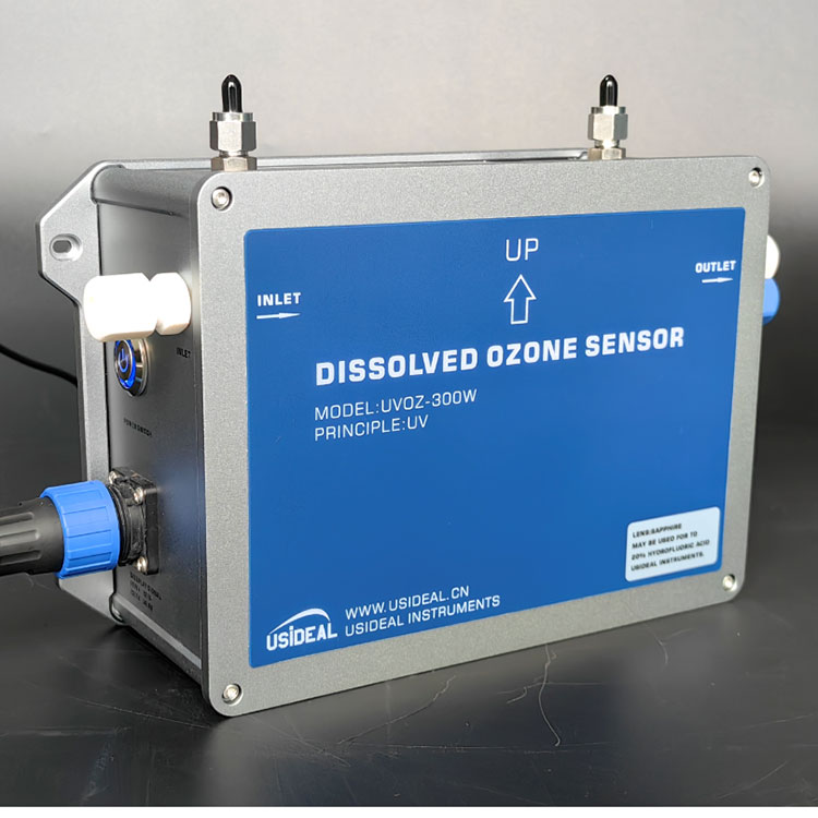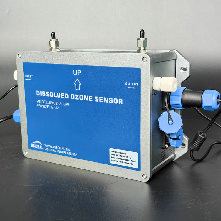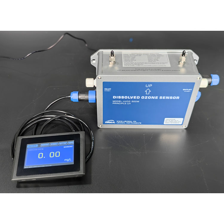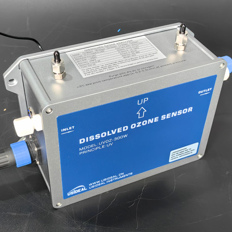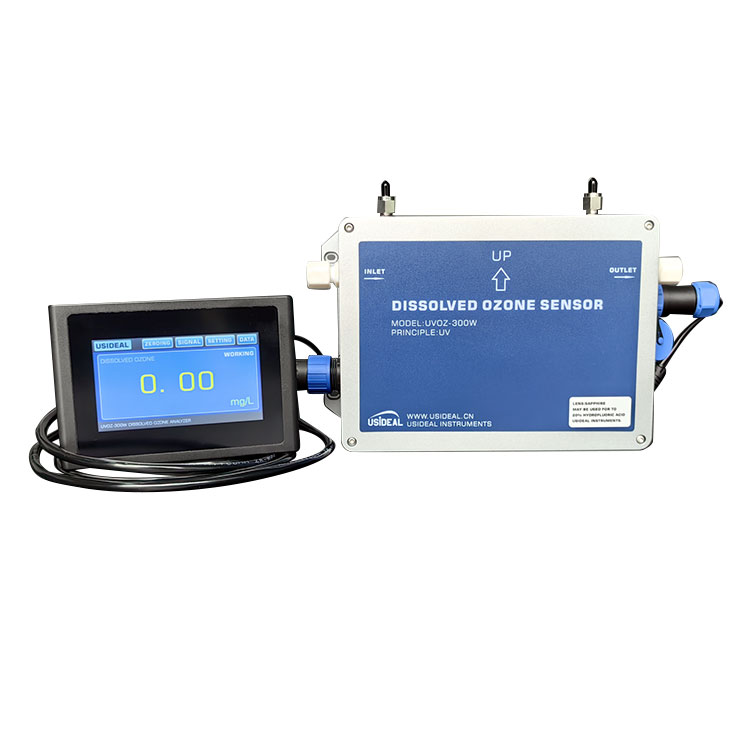 Анализаторот на концентрација на озон на растворен во вода UVOZ-300W е УВ фотометар кој директно ја мери содржината на озон во вода со ултрапура или вода со постојана заматеност. Прилагодливата верзија UVOZ-300W-HF може да се користи за 20% хидрофлуорична киселина озон воден раствор. Материјалите во контакт со водата од озон се: PTFE, FFPM, PFA и кварц или сафир. Анализаторот на концентрација на озон на растворен озон UVOZ-300W има влез и излез на вода и е опремен со интерфејс за работа на екран на допир. Излезот е директно поврзан со PLC со сигнални линии 4-20mA и RS-485.