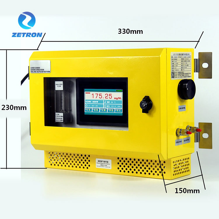 Анализаторот на озонот поставен со wallидови има интерфејс за работа на екранот на допир, кој ја покажува концентрацијата на озон во реално време. А екранот на допир е исто така со дисплеј за компензација на притисок и температура. За опсегот со висока концентрација (G/NM3), таа ја има функцијата на влез на проток, што може да го прикаже излезот на генераторот на озон во реално време. Основната компонента усвојува UV-светлосен систем со долг живот со кварц со висока светлина за пренесување за да спречи нула лебдат да влијаат на точноста на откривањето. Не треба да се затвори внесувањето на озон кога нула за да се осигура дека опремата може да работи постојано 24 часа.